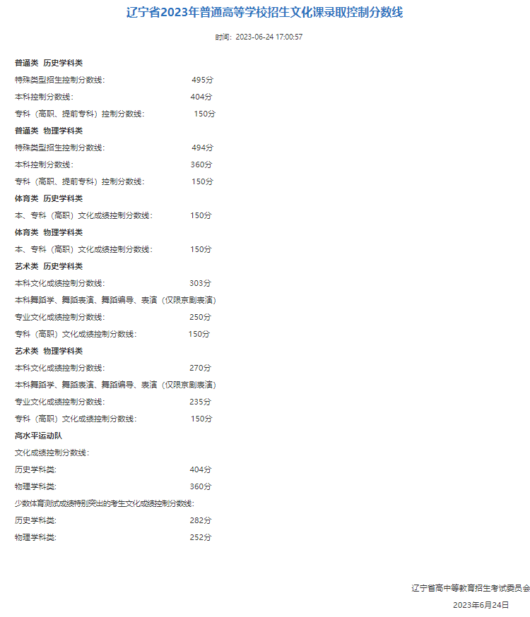 2023年高考录取分数线一览表 全国各大院校录取分数